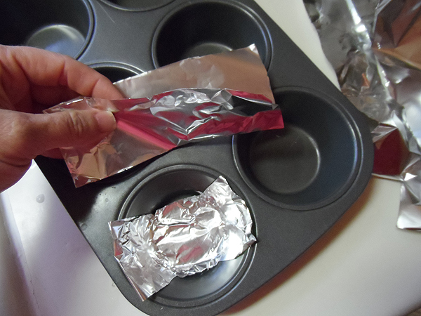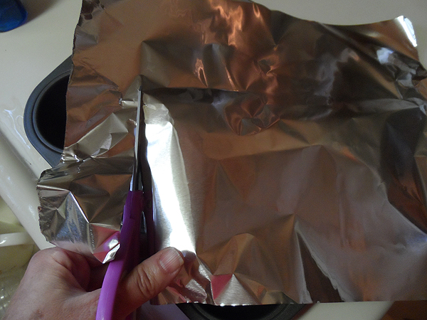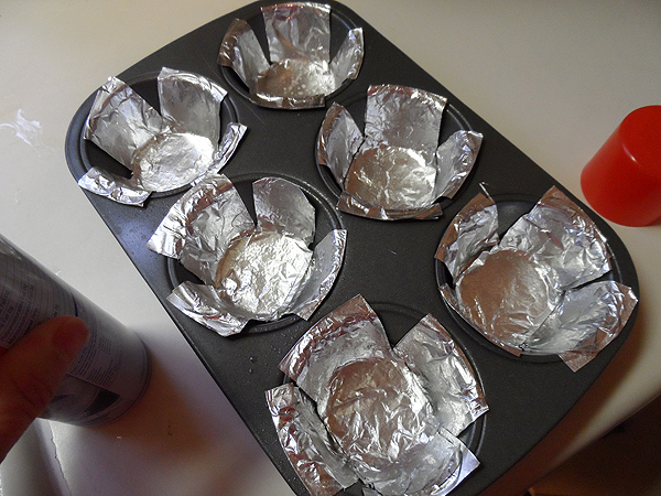- Layer strips in criss cross fashion to use as lifting handles when brownies are done. Spray foil in pan with cooking spray.
