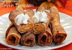 Taco Time Copycat Pumpkin Empanadas from Six Sisters' Stuff - What time is it? Taco time. All jokes aside, we hope you enjoy this scrumptious recipe inspired by this fun and fabulous Mexican-inspired restaurant.