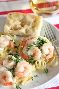 This cool and creamy copycat seafood entree will remind you of a great dish from the Olive Garden. Dress up your dinner time routine with this sophisticated Copycat Shrimp Alfredo. Combine healthy shrimp with sinful Alfredo and you have a perfect match.