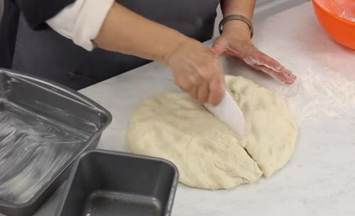 For bread loaves: Spray two 9 x 4 loaf pans with cooking spray. Divide the dough into two portions. Use your fingers or a rolling pin to roll the dough into a square about 9 x 9 inches. Roll very tightly into a log, pinching ends to seal and place into prepared pans, seam side down. Repeat with the second portion.